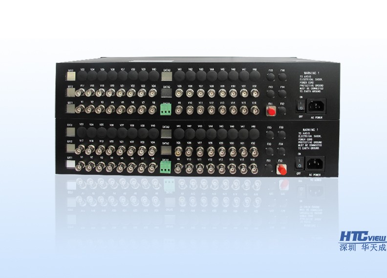 HTCVIEW 32路视频光端机采用国际最先进的数字及千兆光纤高速传输技术,将32路视频及多路RS-232/485/422数据、电话语音、以太网等信号在单芯或双芯光纤上无失真、高质量传输。